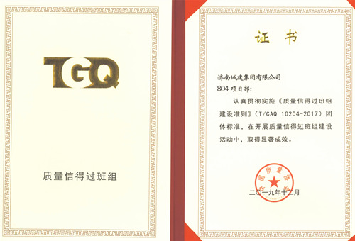 集團804項目部榮獲中國質量協(xié)會“質量信得過班組”