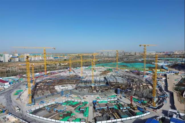 開局決戰,展現城建速度。集團承建的濟南起步區黃河體育及科技園區基礎設施一期工程游泳館及全民健身中心施工項目設計為甲級體育建筑,總建筑面積為16.63萬平方米,總座席數約4000 座,地上部分為游泳跳水館和全民健身功能。項目包括“水主題”健身休閑活動中心、“水主題”文化展示活動中心、時尚體育中心三大部分。工程建設初期,項目團隊第一時間召開動員大會,全力疏通施工“痛點、難點、堵點”,堅持高標準、嚴要求施工原則,完成土方開挖16.6萬立方米,混凝土澆筑38400立方米,鋼筋綁扎5680噸,高質高效推動項目建設。