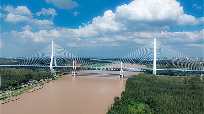 項目全長6.74公里,包括特大橋2座(跨黃河特大橋長2520米,跨濟廣高速特大橋長1066米)、中小橋3座,涵洞12道,平面交叉15處,分離式立交1處,互通式立交1處。跨黃河主橋及引橋段中部同步建設必要預留的軌道交通橋梁工程。