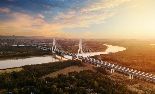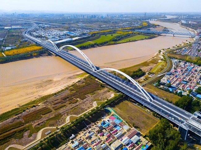 項目全長7.748公里,主橋設計為雙塔雙索面鋼桁梁斜拉橋,與既有黃河公路大橋并行建設,是萬里黃河第一座不等跨并橋建設工程。新老橋橋面高差24米,中心間距33.5米,主跨跨徑與老橋主橋等長,刷新“跨黃”橋梁紀錄。項目預留軌道交通7號線,建成后,將完全實現城市主干路、城市快速路、軌道交通、高速公路及國家干線公路的交通轉換。