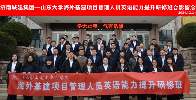 12月24日,集團2024年海外業務骨干英語能力提升培訓班在山東大學千佛山校區開班。山東大學土建與水利學院正處級組織員胡巖、副院長王少偉,集團黨委委員、副總經理史紅軍參加活動。集團市場經銷管理相關崗位人員參加培訓。
