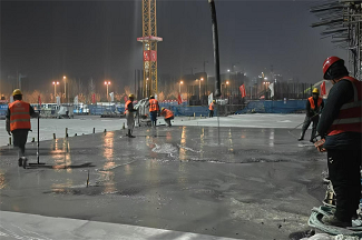 科學(xué)指揮,甘于奉獻(xiàn)彰顯“鐵軍精神”。澆筑過程中,項目管理人員輪班值守,緊盯現(xiàn)場,對每一道關(guān)鍵工序、每一個重要環(huán)節(jié)進(jìn)行嚴(yán)格把控,不放過任何可能影響施工質(zhì)量的因素。在鋼筋特別密集的鋼板墻、型鋼節(jié)點(diǎn)部位,采用“1+1”盯防模式,即1個固定崗+1個流動哨,杜絕漏振情況。同時,考慮到冬季施工的特殊環(huán)境,項目部積極落實(shí)各項保溫措施,從原材料加熱、混凝土運(yùn)輸保溫到澆筑后的養(yǎng)護(hù),嚴(yán)格遵循冬季施工規(guī)范,確保混凝土的施工質(zhì)量。
