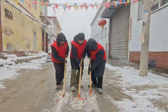 面對降雪給群眾出行帶來的不便,管片制造公司黨支部迅速行動,組織志愿者前往平安街道附近村莊開展義務除雪。黨員帶頭,志愿者們不畏嚴寒,齊心協力清理村內主干道、巷道及公共場所的積雪積冰,有效保障了村民安全出行。此次行動展現了公司黨支部服務社會、奉獻社會的責任擔當,是主動融入民生保障、傳遞溫暖的切實舉措。