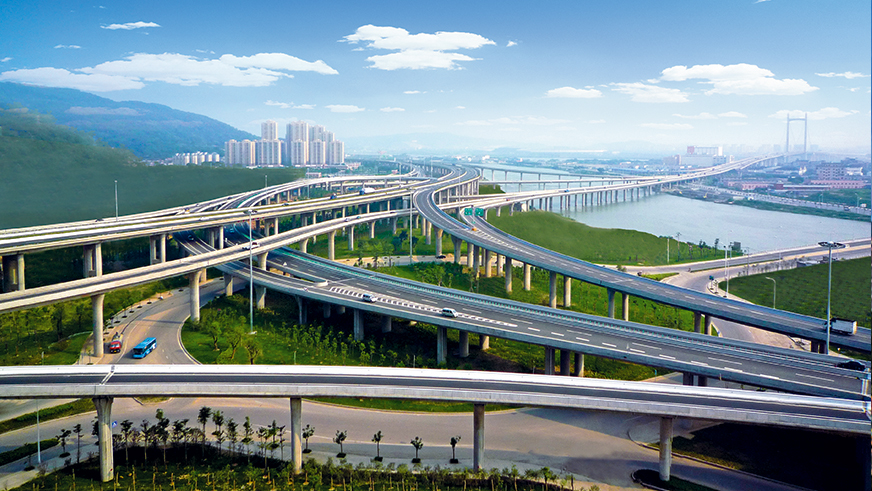 二環(huán)南路建設(shè)工程全長約 12 公里,總投資 62.4 億元,沿線采用高架、隧道、地道、路塹和地面道路組合模式,高架快速路雙向 6 車道,地面道路雙向 8 車道。項目榮獲國家優(yōu)質(zhì)工程獎。